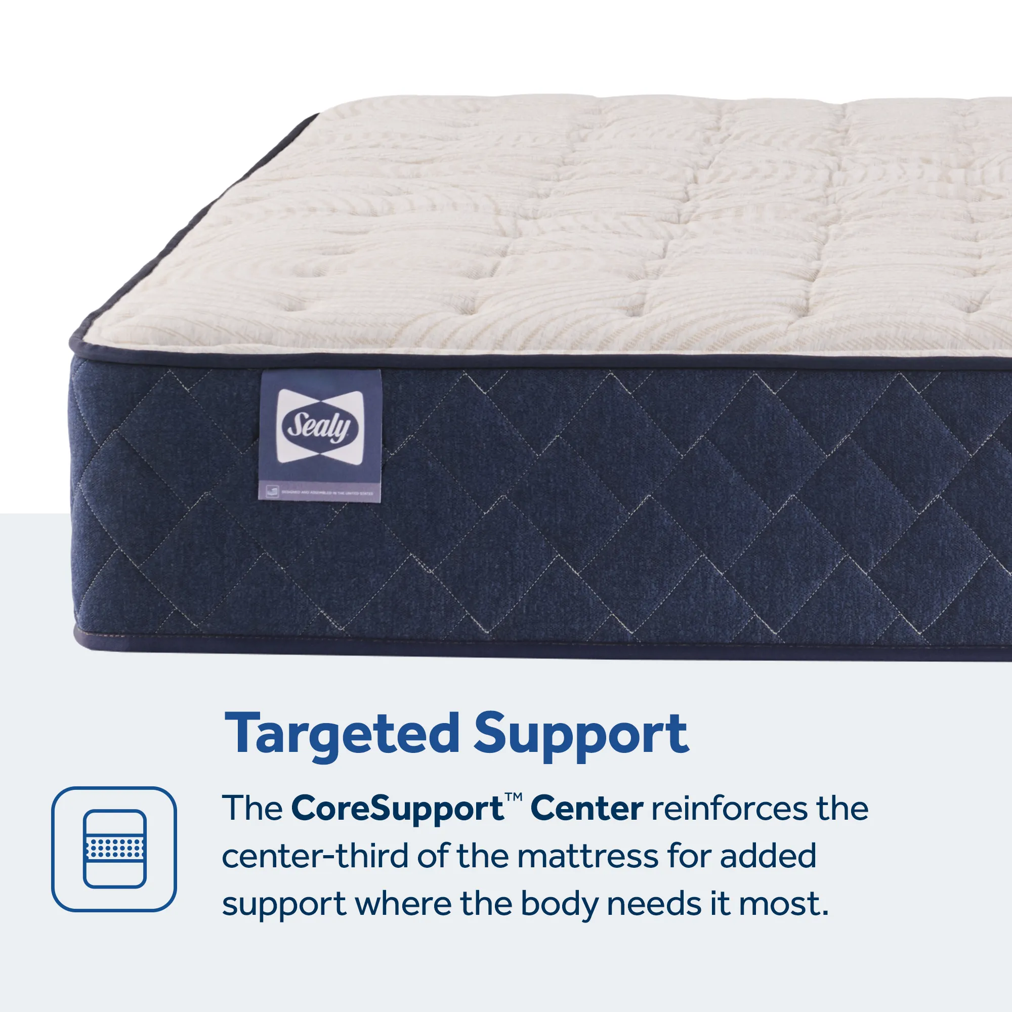 This innerspring mattress provides even more edge-to-edge support through the combination of our SealyStability™ encased coils and the StableEdge™ Pro system. The addition of the CoreSupport™ center provides extra support for the heaviest part of the body with an additional layer of high-quality memory foam.
